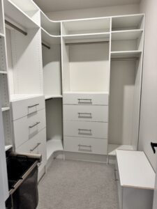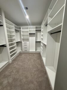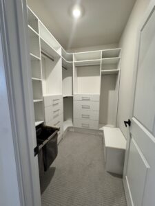 From walk-in closets to reach-in closets, home offices, pantries, and more, our tailored designs blend elegance with practicality. Whether you’re looking to create a serene master closet, optimize a tricky corner, or add seamless storage to your garage, we bring your vision to life.