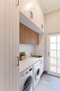 Absolutely! Custom laundry rooms can be designed to fit even the smallest spaces. With clever storage solutions and space-saving features, we ensure your laundry area stays organized, efficient, and easy to use.